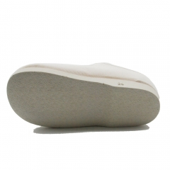 Mercedita de lona con cierre de hebilla y suela de goma al tono. La horma viene grande, pero puede encoger un poco al lavarse.